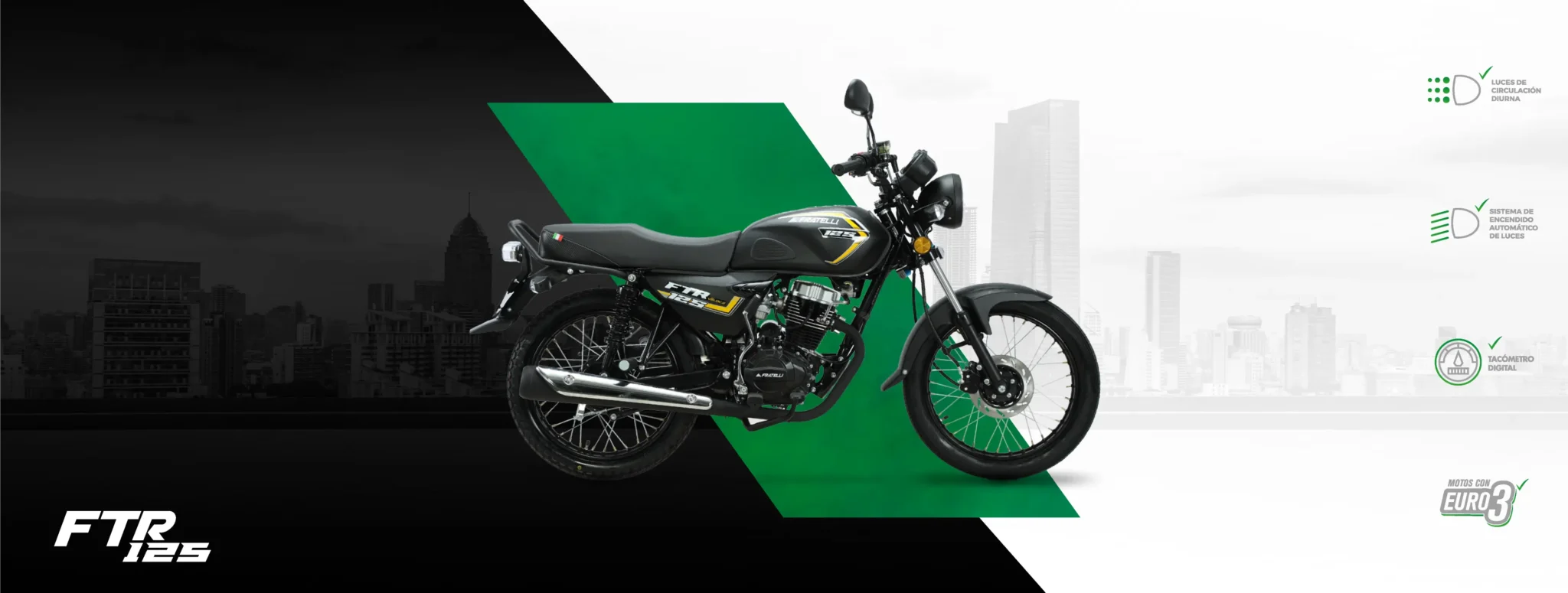 La FTR 125, una moto para los que no se conforman. Precio accesible ideal para los guerreros del día a día que buscan rendimiento y estilo.