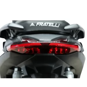 Scooter Fratelli FX 160 – Motor 155cc 16HP, inyección electrónica, frenos ABS y transmisión CVT automática. Diseño deportivo con tecnología de punta para ciudad y carretera.